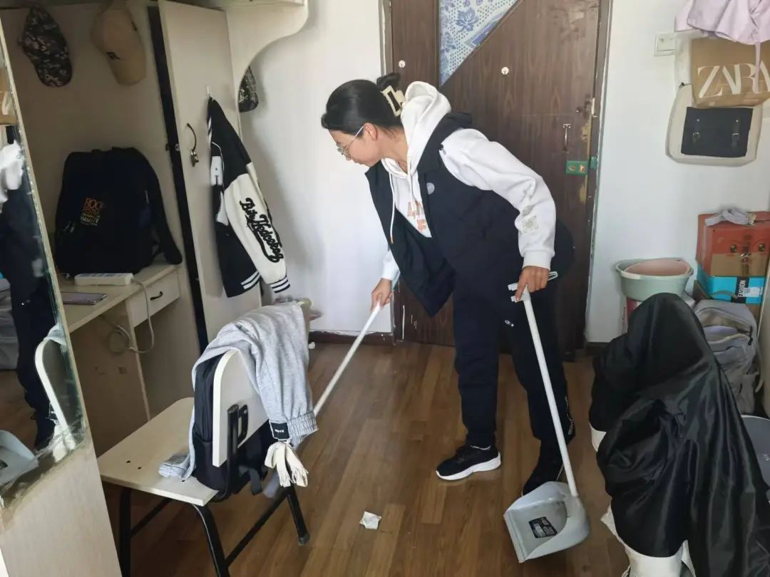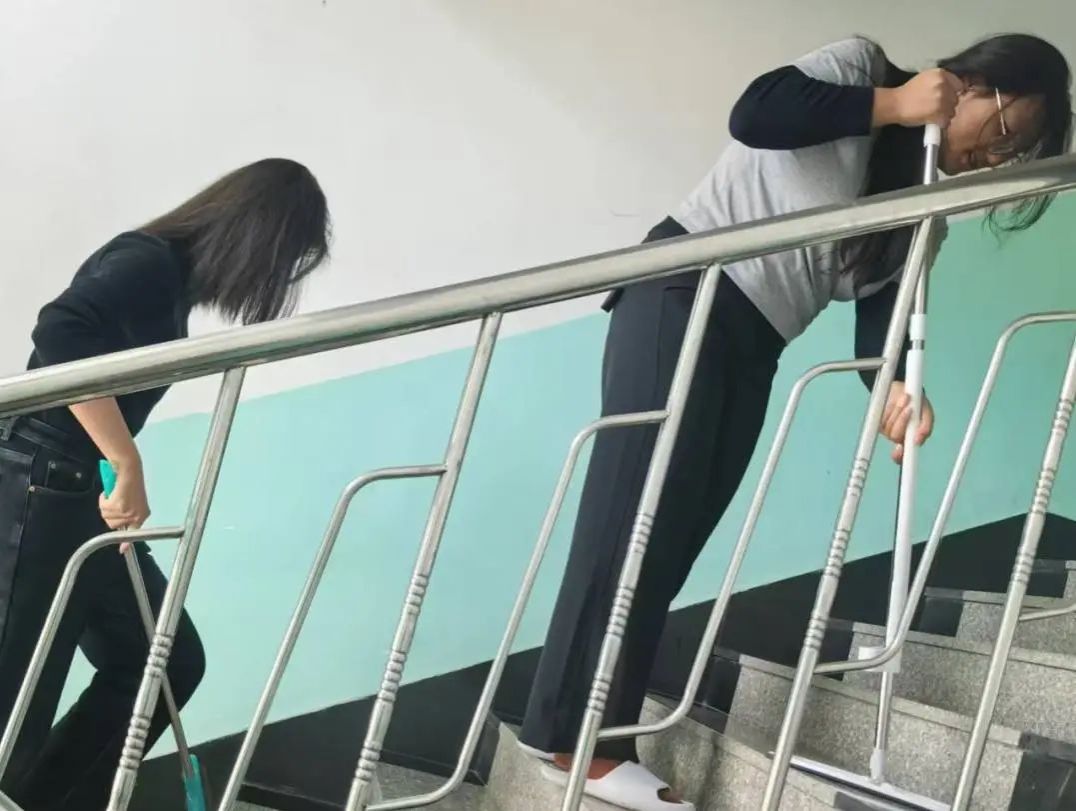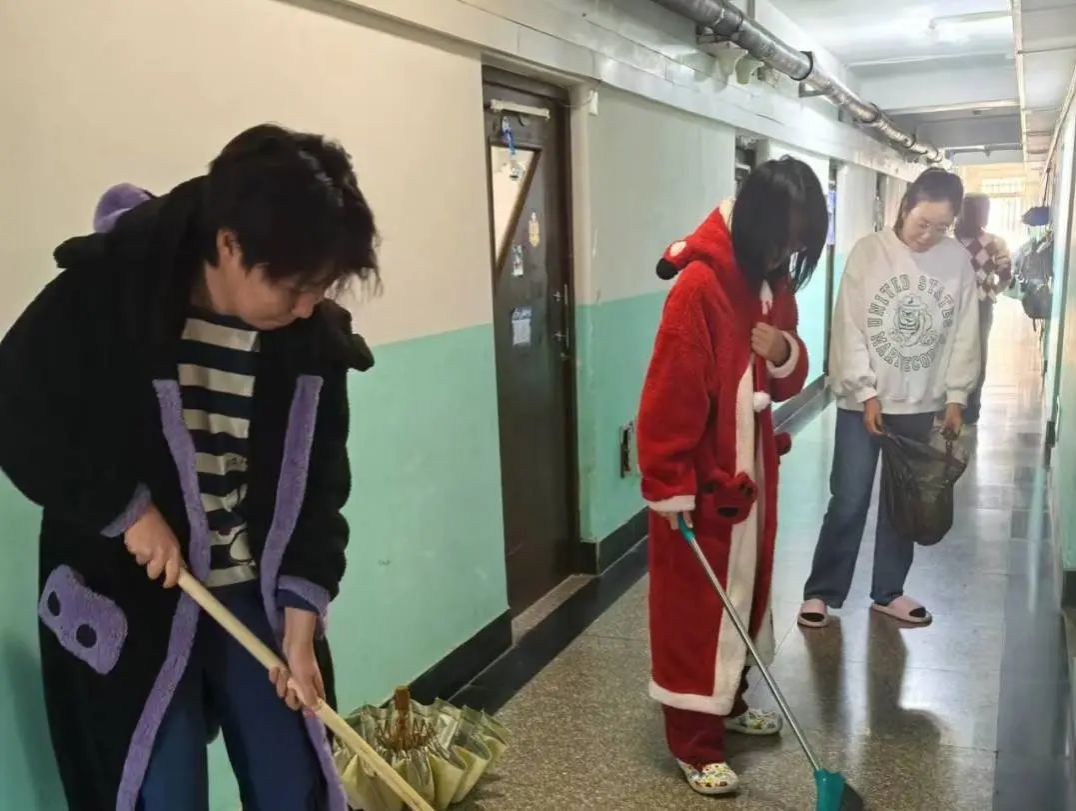 各班班委组织同学们开展宿舍楼内廊道、楼梯等公共空间的大清洁活动,确保不留死角,营造了整洁舒适的公共空间生活环境。