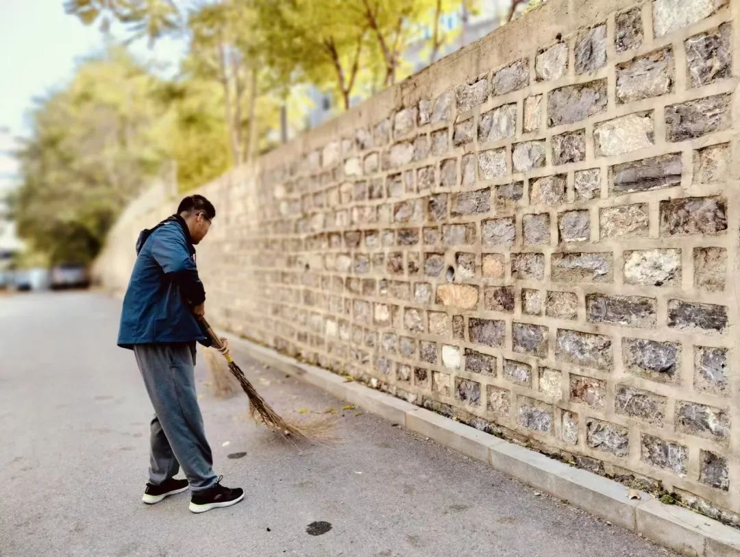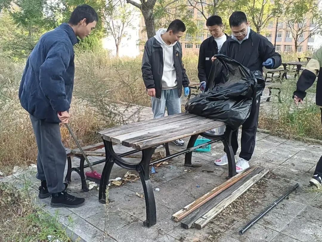 在劳动过程中,2024级新同学们干劲十足。他们将劳动理论与实践结合,高效完成落叶清扫、杂物清理等工作,顺利完成学院分担区的清洁任务。