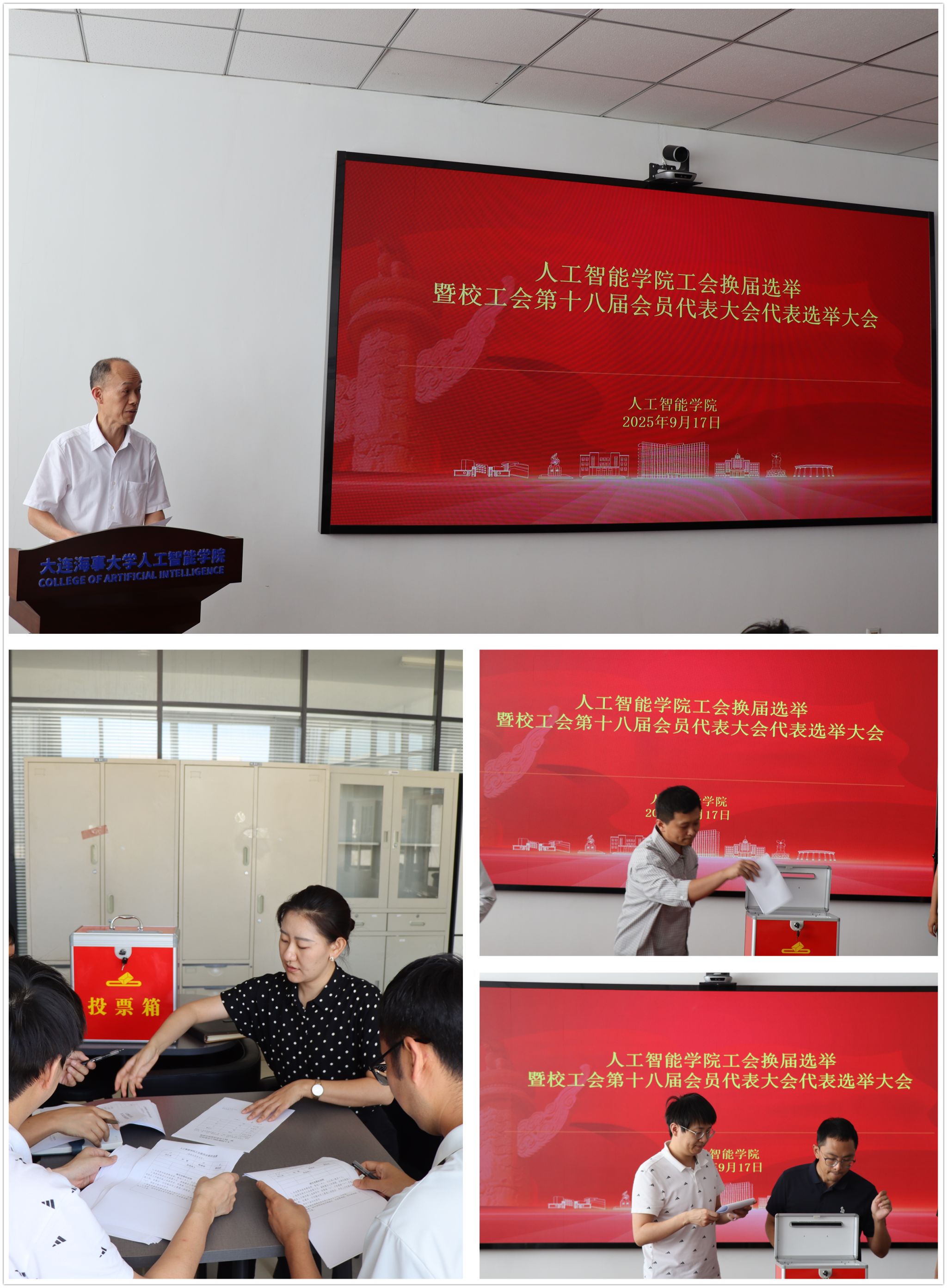大会结束后,学院第二届工会委员会委员召开委员会第一次全体会议,选举许仁杰同志为工会主席,陈雅妮同志为工会副主席,滕安妮同志为女工委员。学院第二届工会委员会将在校工会的指导和学院党委的领导下,提升履职能力和服务水平,努力将工会建设成为充满人文关怀、团结友爱、朝气蓬勃的“教职工之家”。